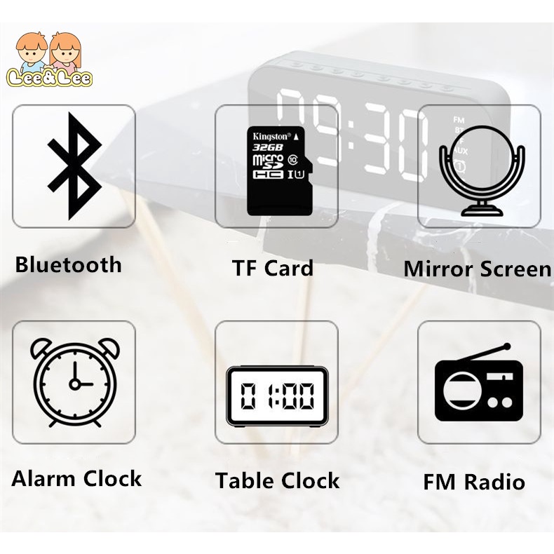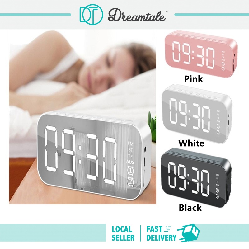 Digital Bluetooth Speaker Alarm Clock LED Portable Speaker Mirror Screen Extra Bass Stereo Wireless Music Player HAL143