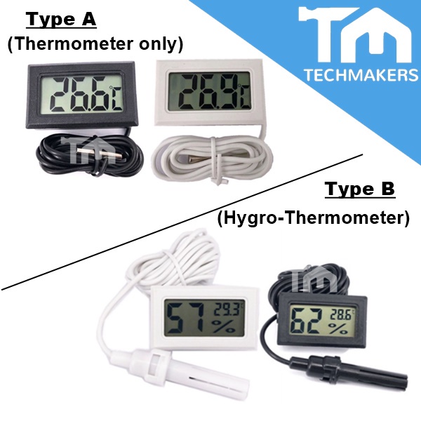 Digital LCD Thermometer/Hygro-Thermometer Temperature with Thermal Probe Humidity (Water Resistance) White / Black