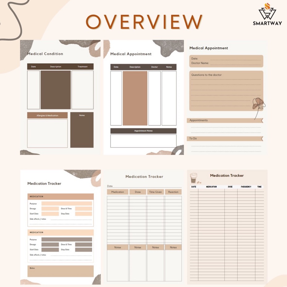 Digital Medical Planner | Medical Care Checkup Schedule Appointment Tracker | Medication Tracker | PDF Printable