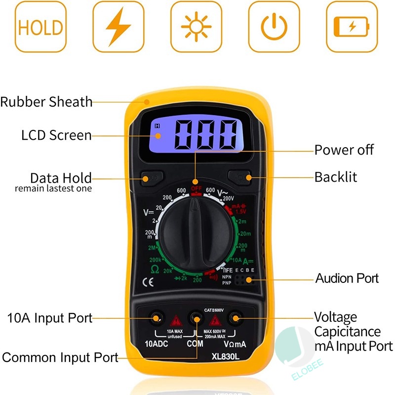 Digital Multimeter XL830L Portable High-precision Digital Multimeter Electrician Multi-function Instrument Volt Meter