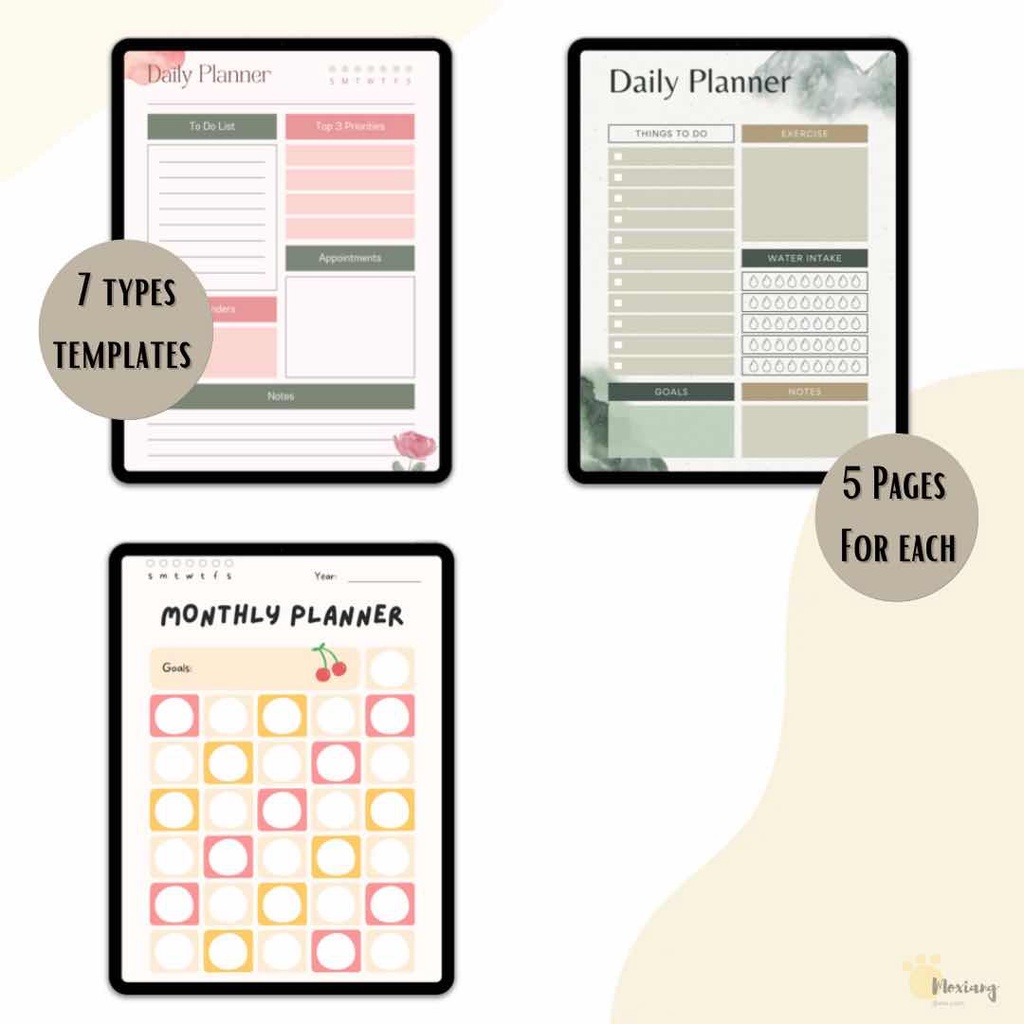 Digital Planner Daily Weekly Monthly Planner Tracker Templates Printable Planner