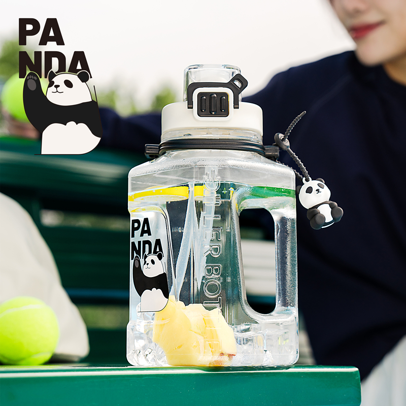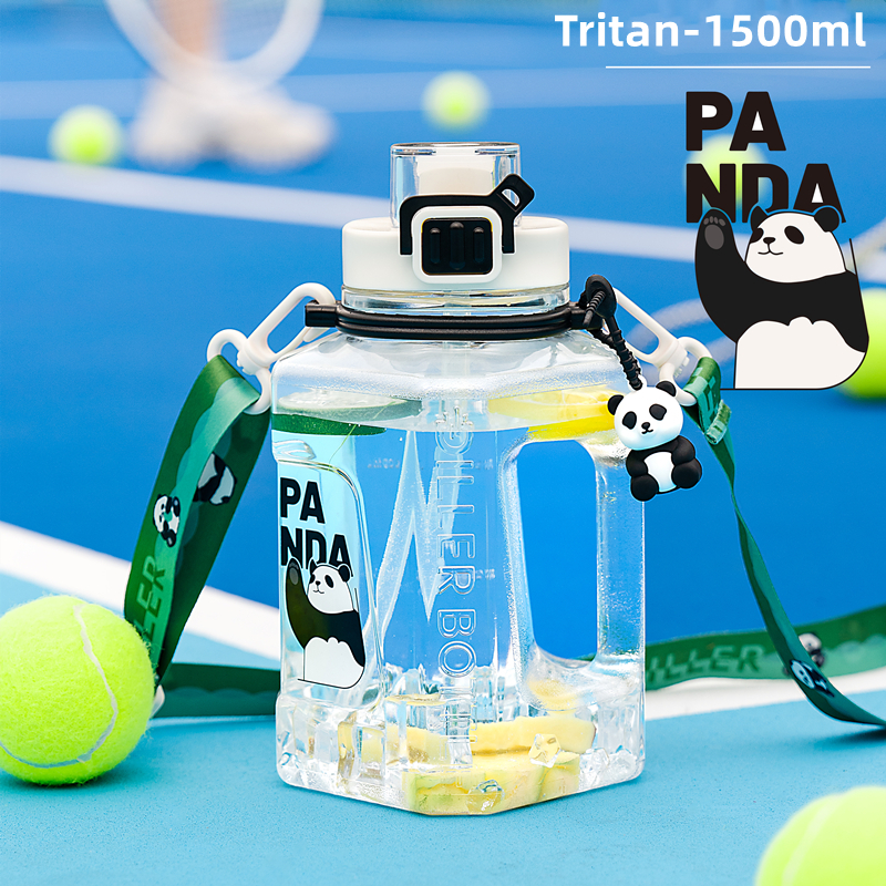 Diller Large Water Bottle With Silicone Straw and Spout Handle Water Container Panda Gallon Jug For Gym and Sports 1500 D2443