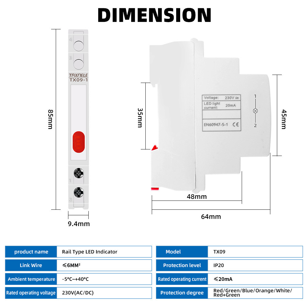 Din Rail Mount LED Signal Lamp AC DC 220V 230V Indicating Pilot Lights Lamp Red Green Blue Orange White 9mm