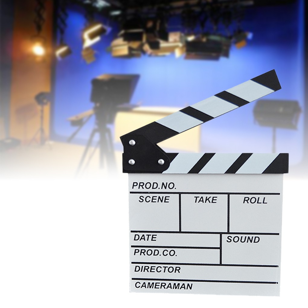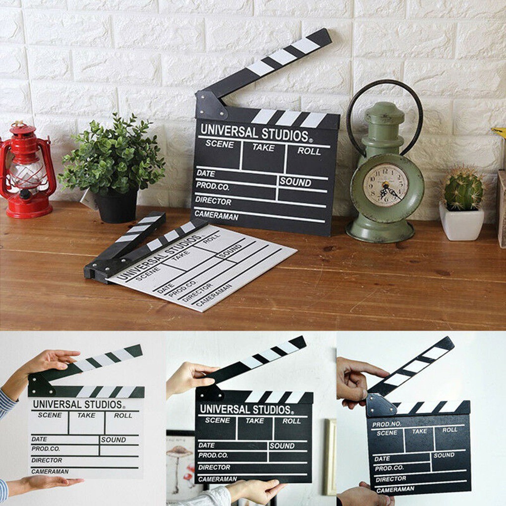 Director's Film Clapboard Action Scene Clapper Board Wooden Movie Film Clap Slate,L,Black