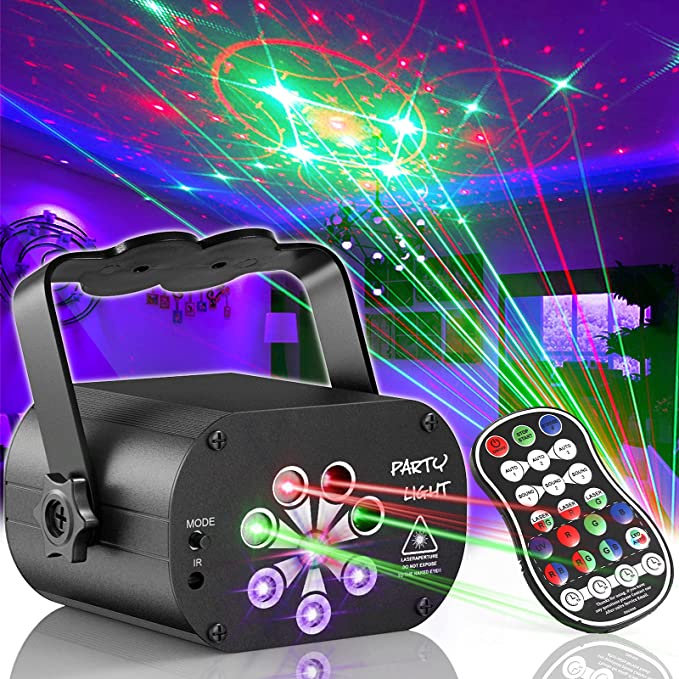 Disco Lights Party Light, caivimvn 4 Patterned Lens + 3 UV Lights + 1 Colorful LED DJ Disco Light Sound Activated with Remote Control for Birthday Halloween Bar Club Wedding