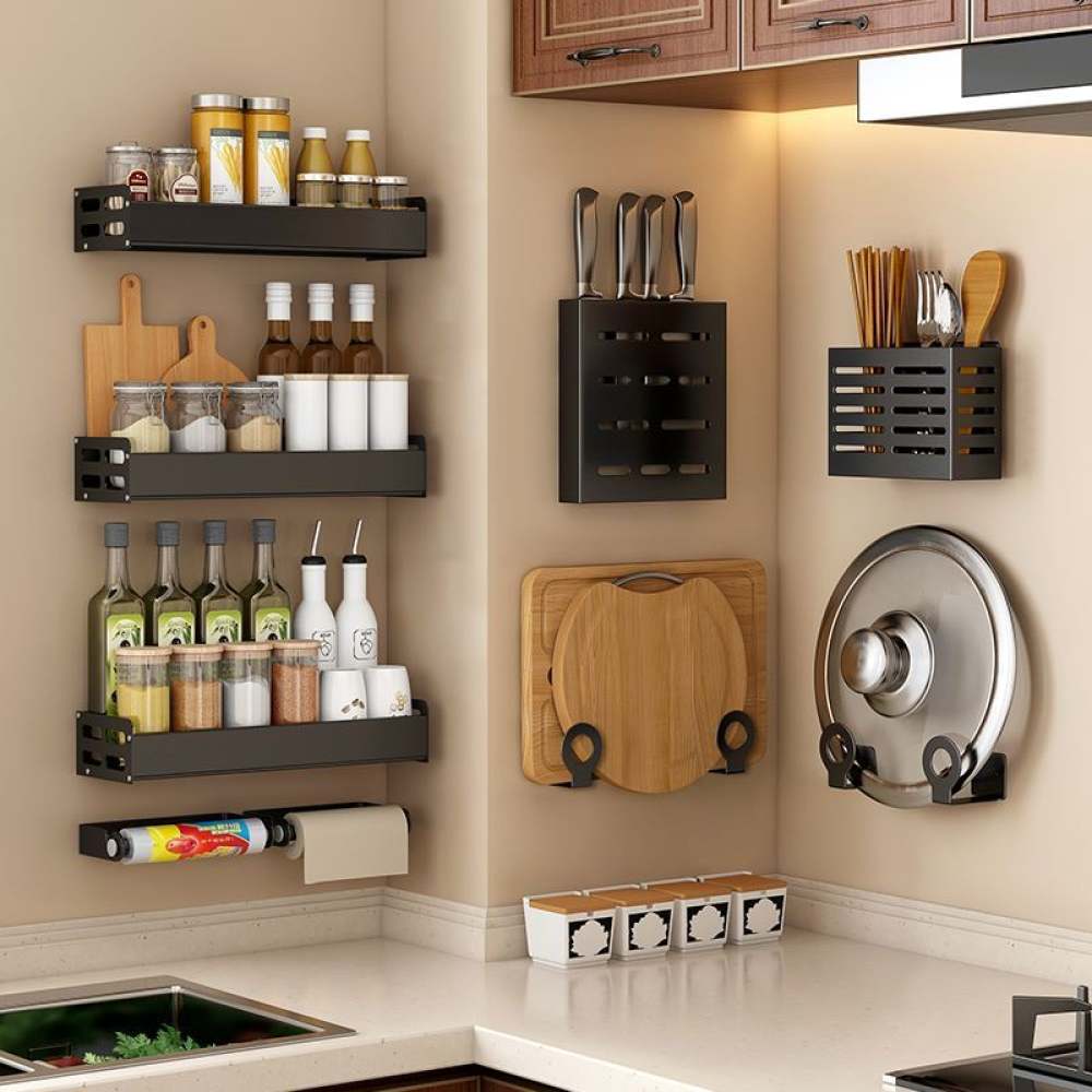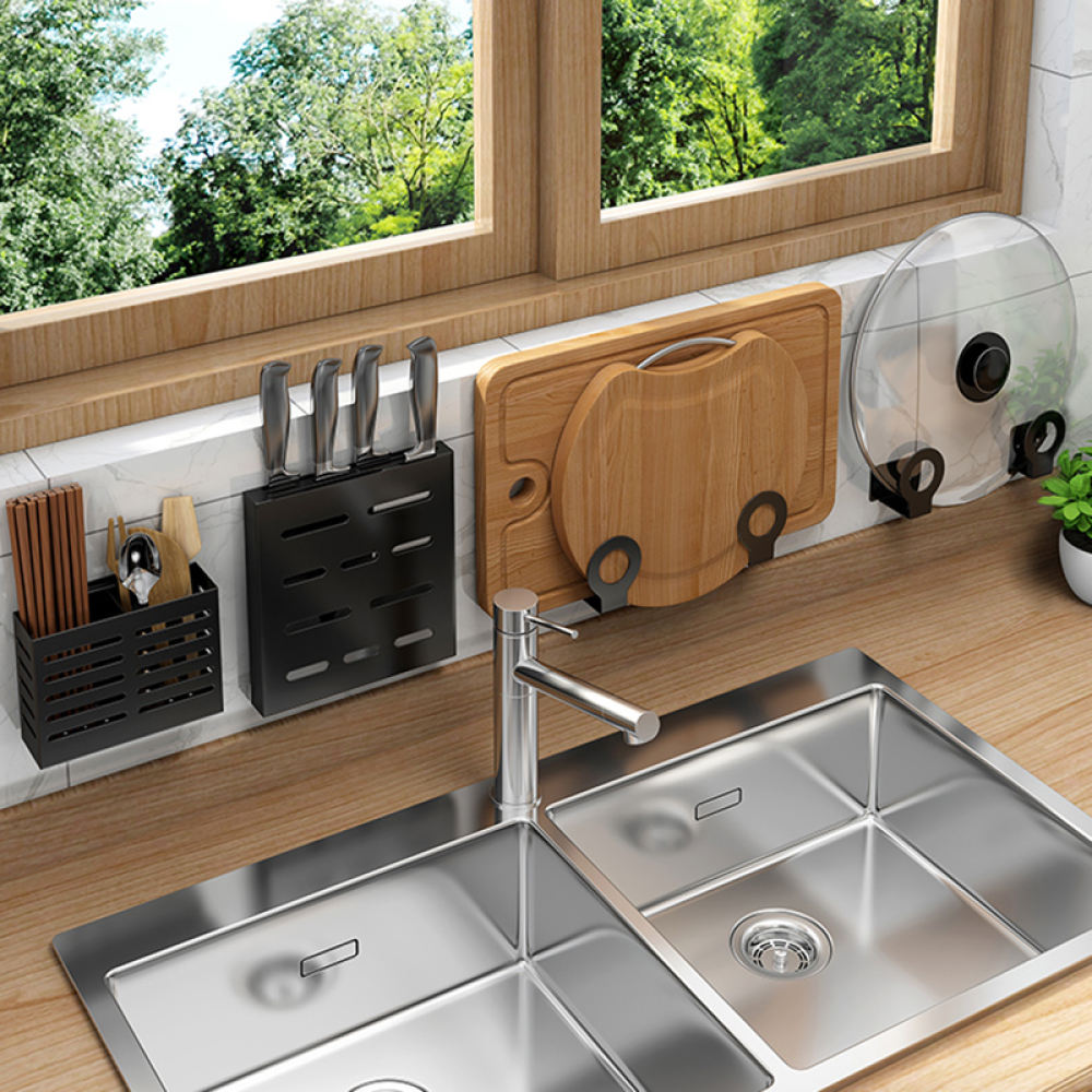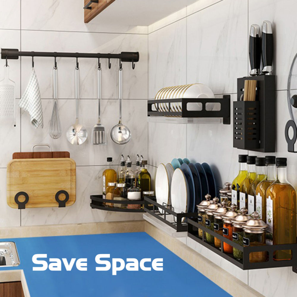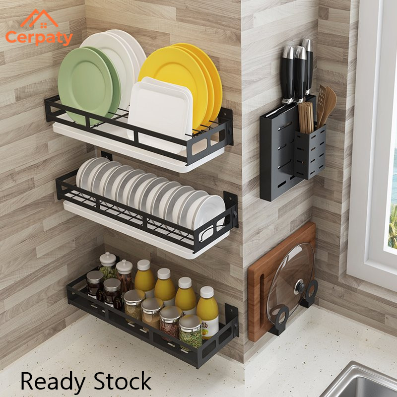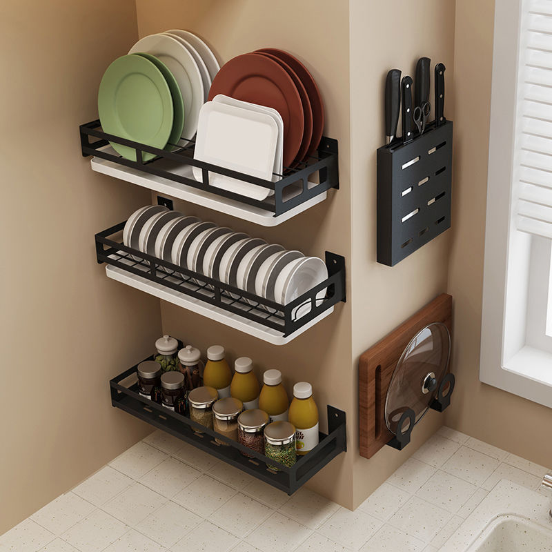 Dish Stainless Kitchen Steel Wall-Mounted Drainer Rack Utensils Rack Knife Holder Condiments Rack