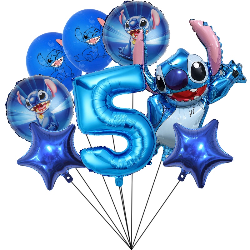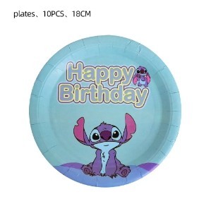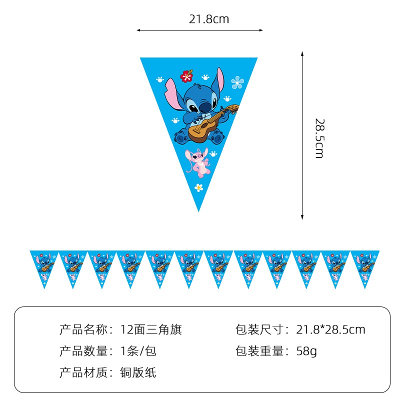 Disney's Lilo&Stitch Party Decoration, Stitch Cartoon Theme Disposable Cutlery, Cake, Card Insertion, Birthday Hat, Flag Pulling, Digital Balloon Set, etc