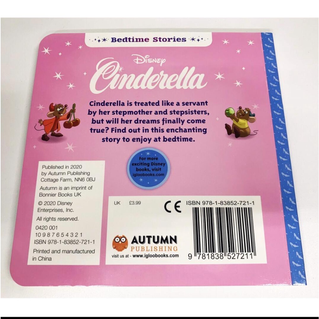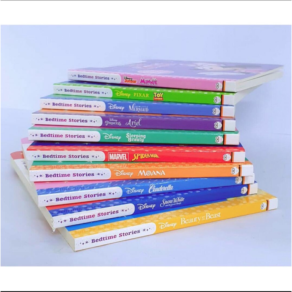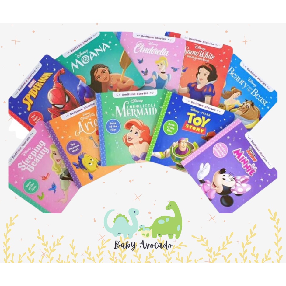 Disney Junior Bedtime Stories Books (Board Book) Cinderella,Beauty and the Beast,Snow White,Spider Man,Moana,Toy Story