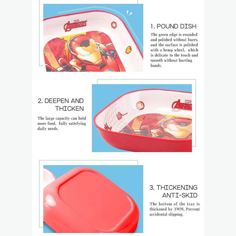 Disney Marvel Spider-Man Cartoon Square Plate and Utensils Set - Food Grade, High Temperature Resistant for Household Dining