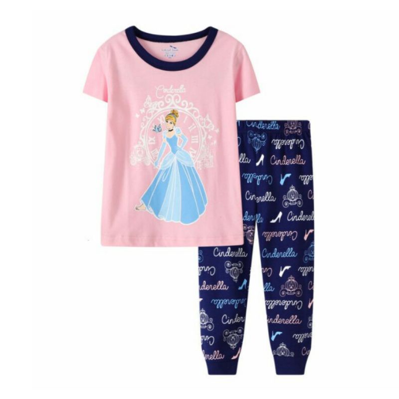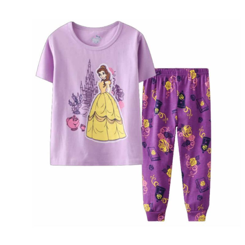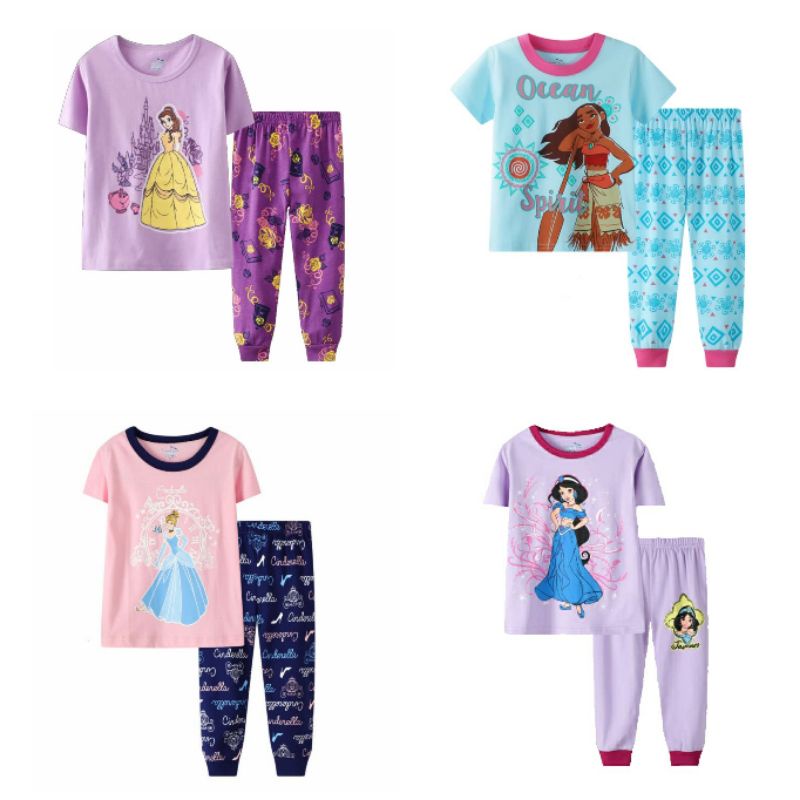 Disney Princess Ariel Cinderella Moana Jasmine Belle Frozen Baby Kids Girls Short Sleeves Pajama Set
