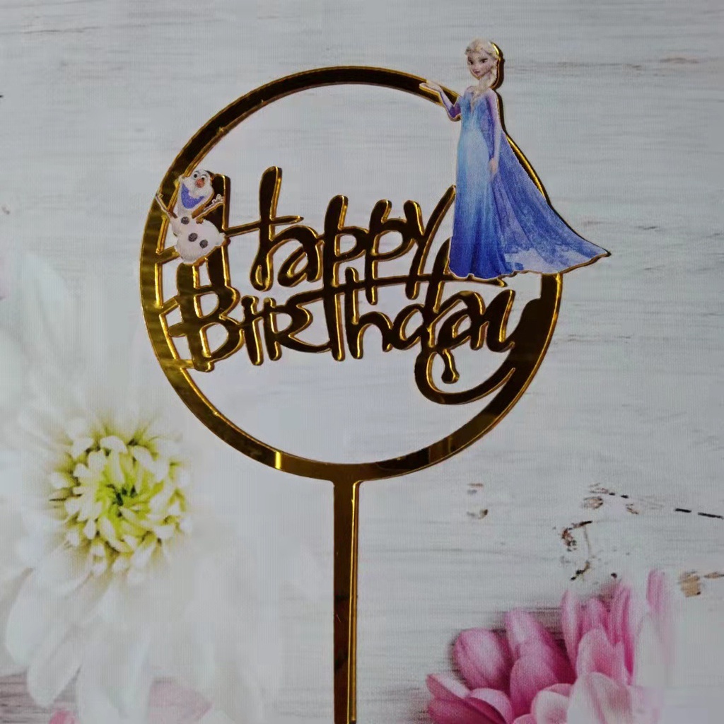 Disney Princess Happy Birthday Cake Topper Decoration Elsa Ariel Castle Crown