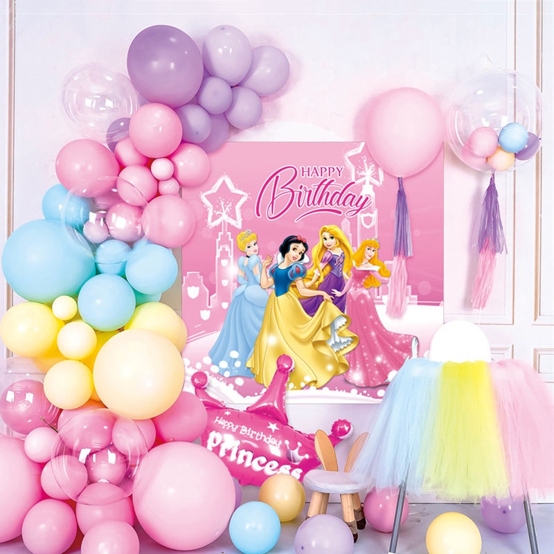 Disney Princess Party Decoration Set Snow White Happy Birthday Party Backdrop Crown Balloons Cartoon Girl Party Supplies