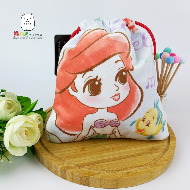 Disney TSUM Drawstring Bag The Little Mermaid Jasmine Cinderella Snow White Sleeping Beauty Rapunzel Belle Alice [DS0045] Bear Character Popular Life Store
