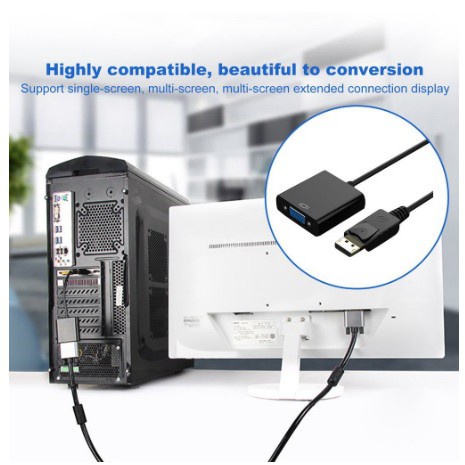 DisplayPort DP Male To VGA Female Video Converter Adapter Cable For Monitor