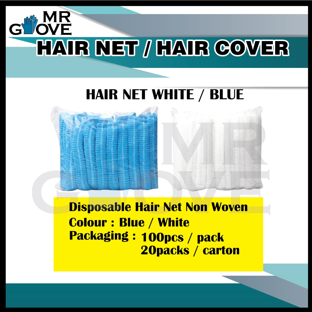 Disposable Hair Net blue white Premium (100pcs)/ 21" Hair Cover/Clip Cap