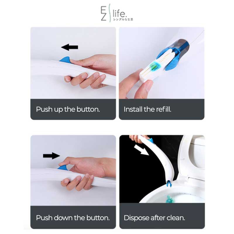 EzLife [CLEARANCE] Disposable Toilet Brush Flushable Toilet Cleaner Angle Free Cleaning Brush with Refills