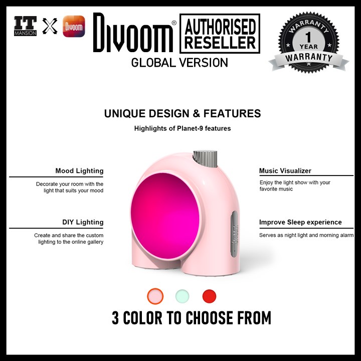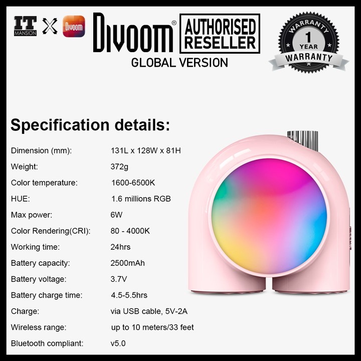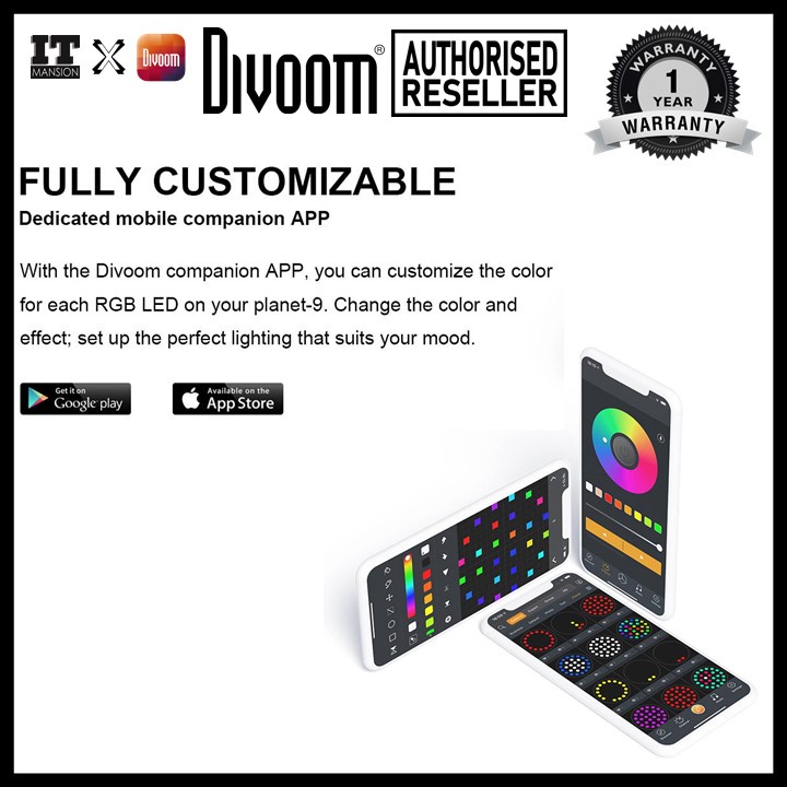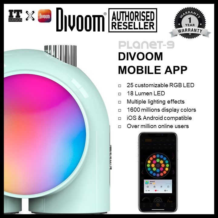 Divoom Planet 9 Customizable Smart ARGB Mood Cordless Table Lamp with Programmable RGB LED Mood Light DIY Colour
