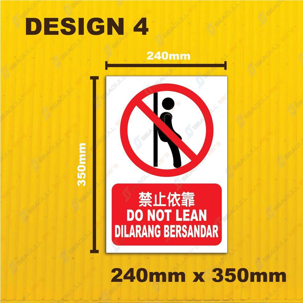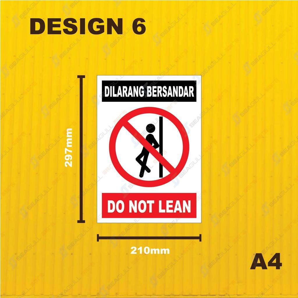 Do not lean / Dilarang bersandar / Papan Dilarang Bersandar / Sticker Signage / A4 / 240mmX350mm