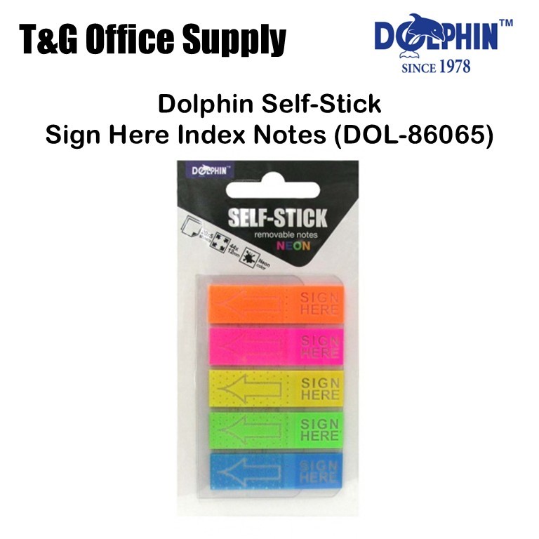 Dolphin | Self-Stick (Removable Notes) Index Notes / Sign Here Index Notes - Neon Colour (5 Colour)