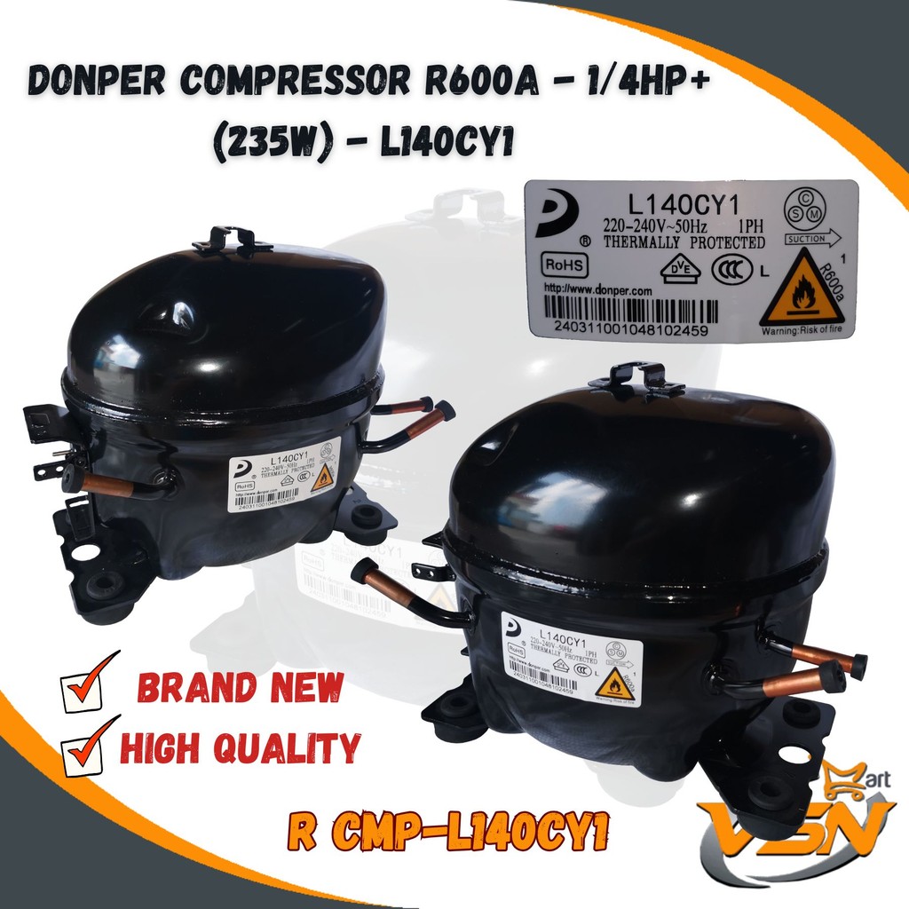 Donper R CMP-L140CY1 Compressor | R600a | 1/4HP+ 235W | Eco-Friendly | Refrigerator/Chiller/Mini Freezer [READY STOCK]