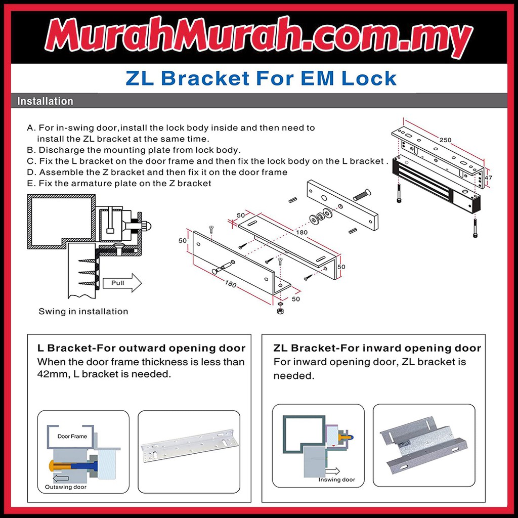 Door Access ZL Bracket - type Bracket 600lbs EM lock bracket for out swing door