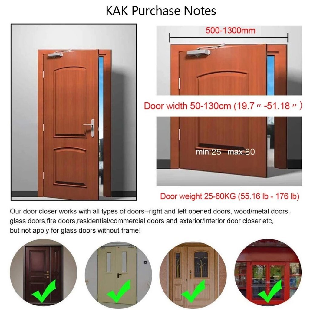 Door Closer Automatic Adjustable Closers Hydraulic Auto Close Door-Closer with Speed Control 180 Degree