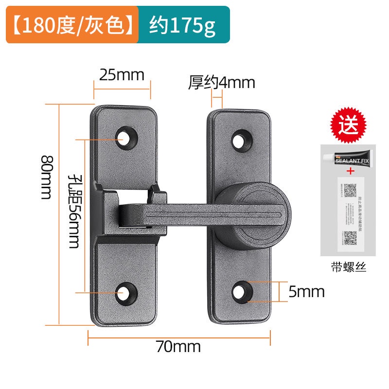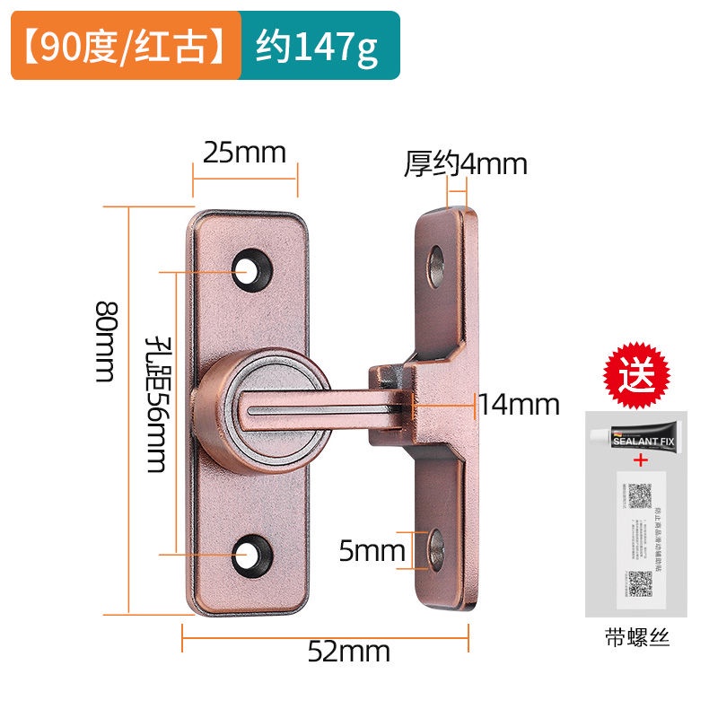 Door Handle Cabinet Handle Free Punch Door Latch90Sliding Door Lock Latch Room Door Latch Sliding Door Shackle Buckle Door Bolt Toilet Bathroom Lock