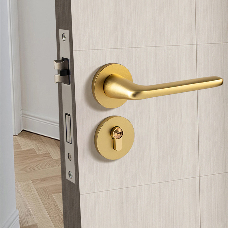 Door Handle Lock Anti Theft Silent 304 Stainless Steel Matte Gold Home Living Hardware Set With Keys Handle Door Lock Hinge Door Suction