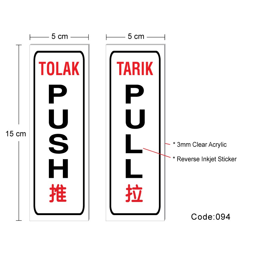 Door Sign. Push & Pull. Tarik Dan Tolak, Papan Tanda
