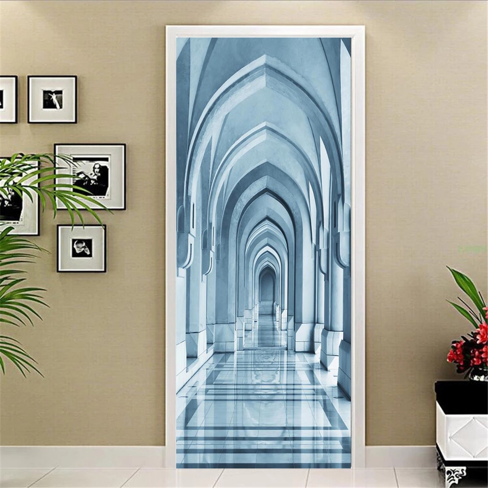 Door Sticker Modern 3D DIY European Fashion Wallpaper Living Room Art Door Poster Self-Adhesive Mural Stickers Home pelekat pintu