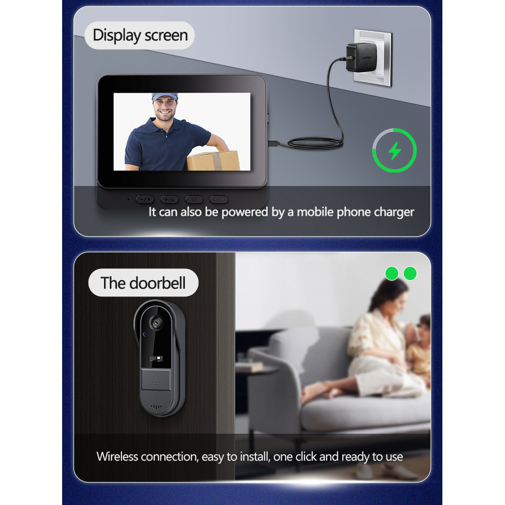 Doorbell wireless waterproof smart home Video Doorbell Infrared Night Version Two-Way Speaking camera Door Ring 4.3 inches No need app