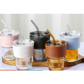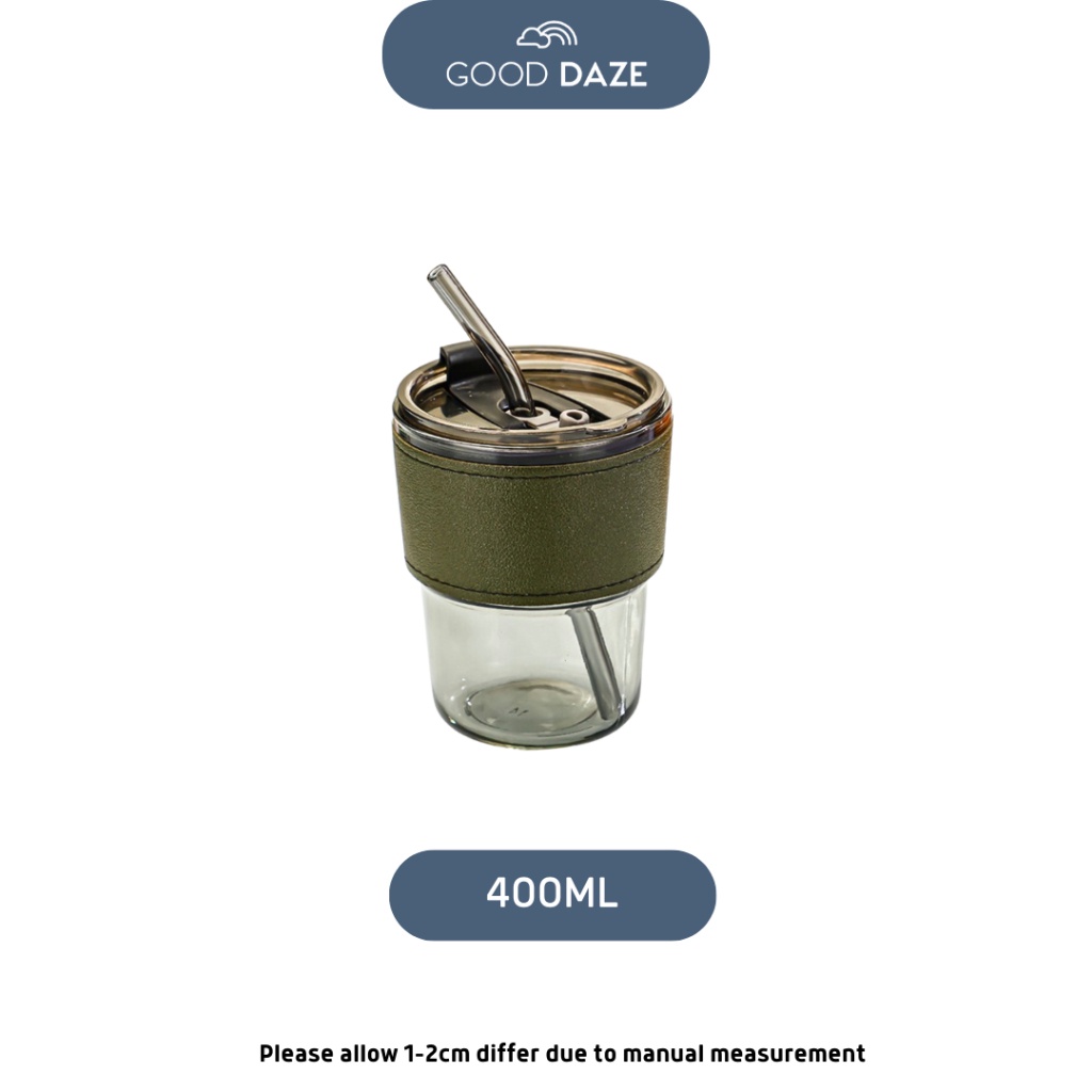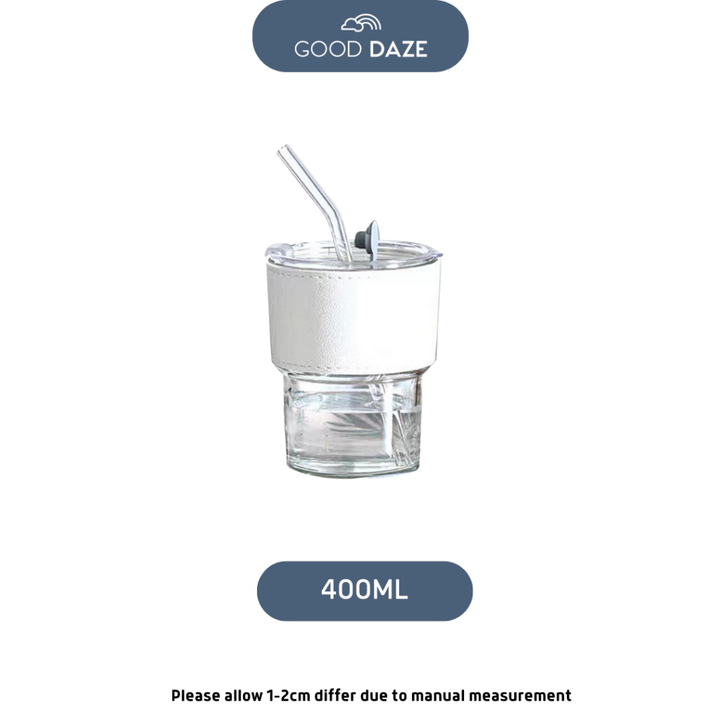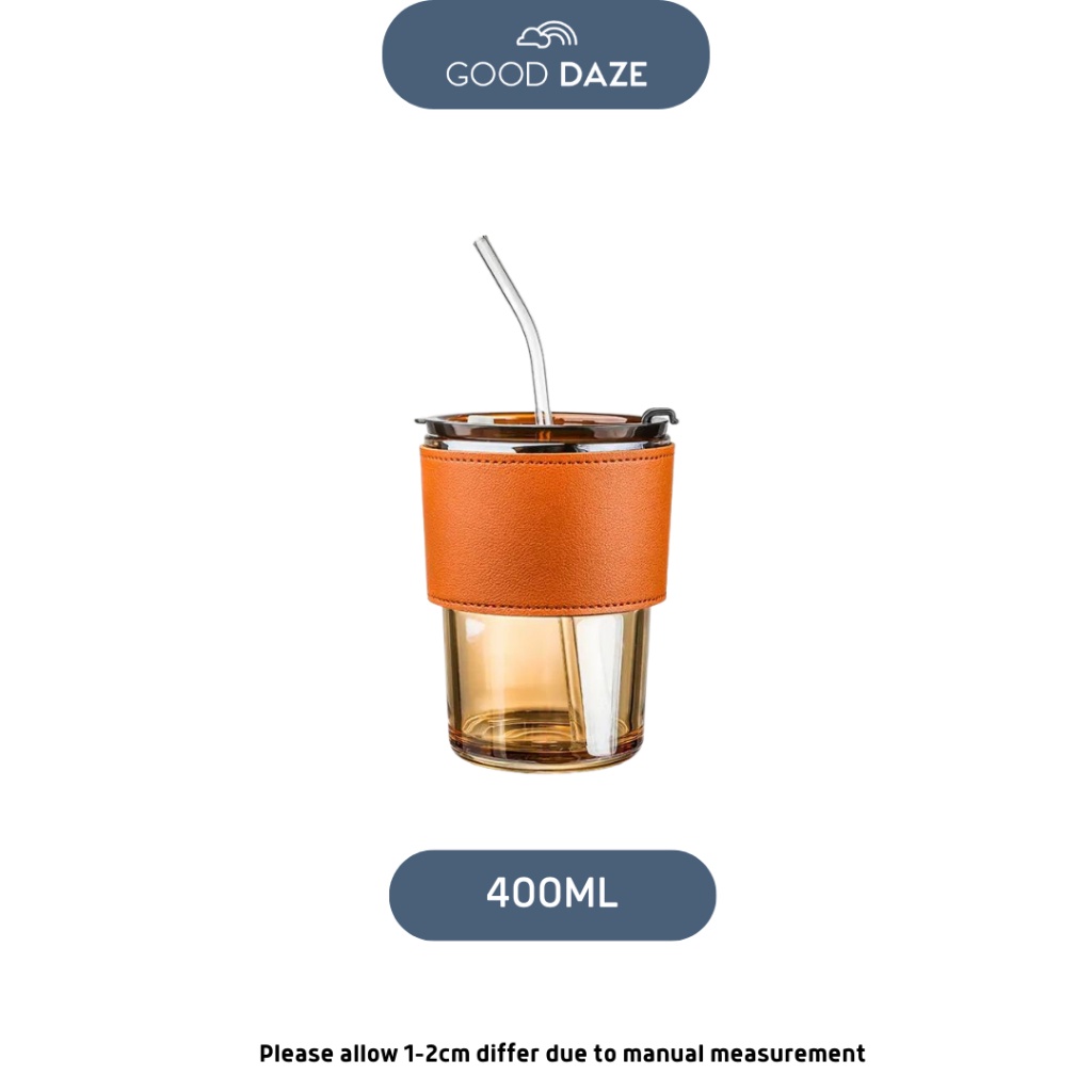 Doorgift Glass Straw Lid Heat Cold Resistant Iced Water Bottle Viral Coffee Glass Mug Transparent Travel Mug Leather