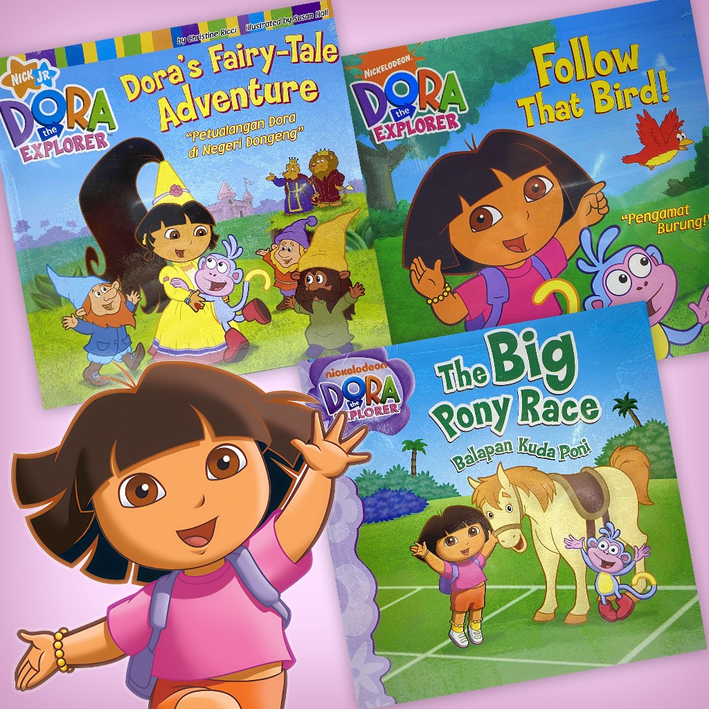 Dora The Explorer Story Book 3 Colored Story Books Collection 1 - Fairy Tale Adventure - The Big Pony Race - Follow That Bird