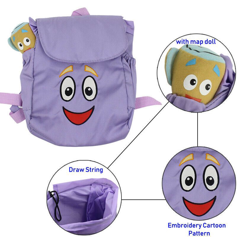 Dora the Explorer Nylon Backpack Preschool Bag & Map Plush Doll Christmas Gift