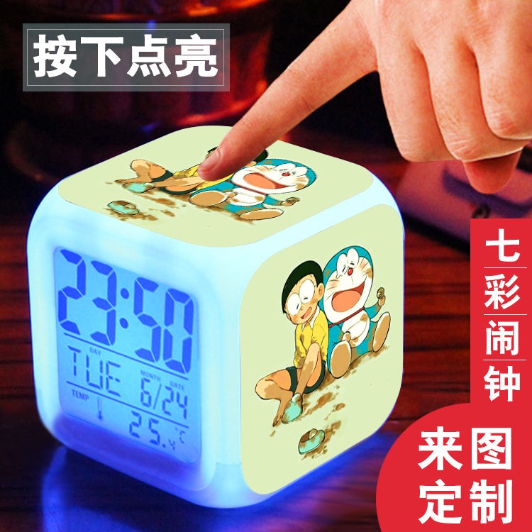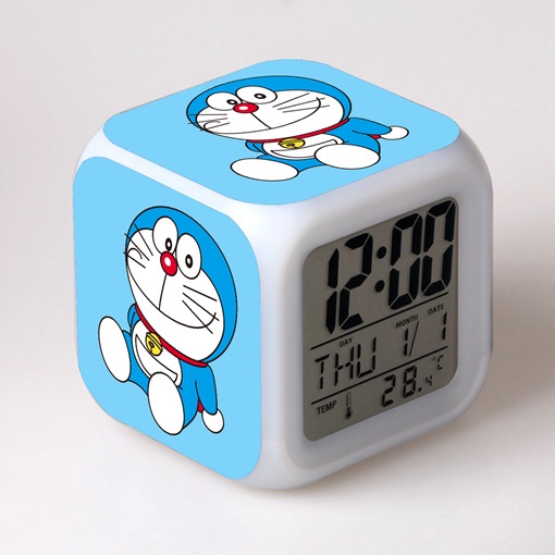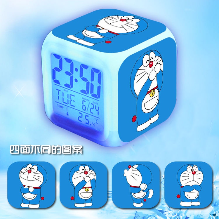 Doraemon alarm clock robot cat student children gift colorful alarm clock color changing square clock
