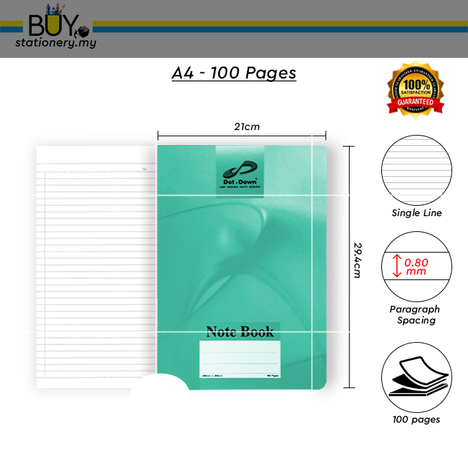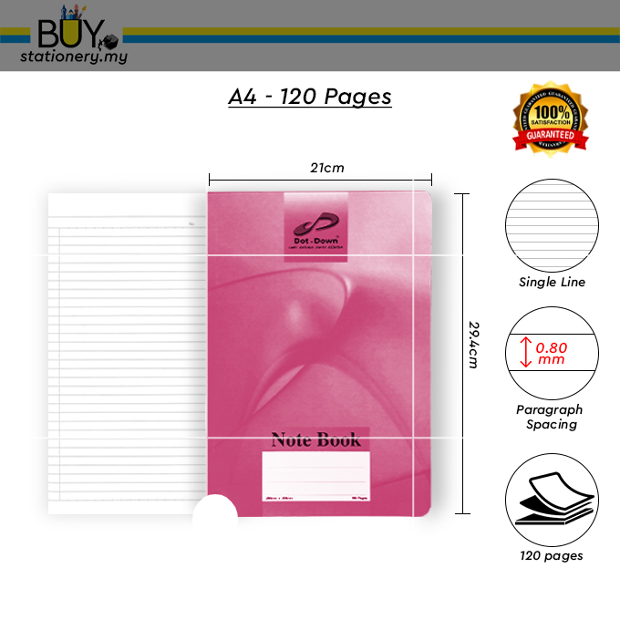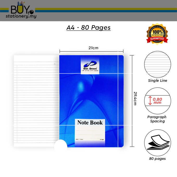 Dot Down F5 & A4 60 gsm Single Line Notebook & Exercise Book 80/100/120/160 pages - (1s/PCS)
