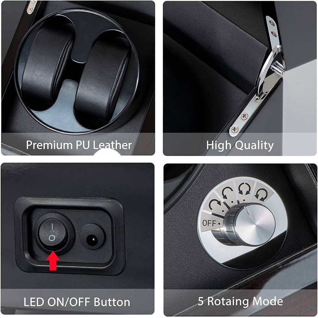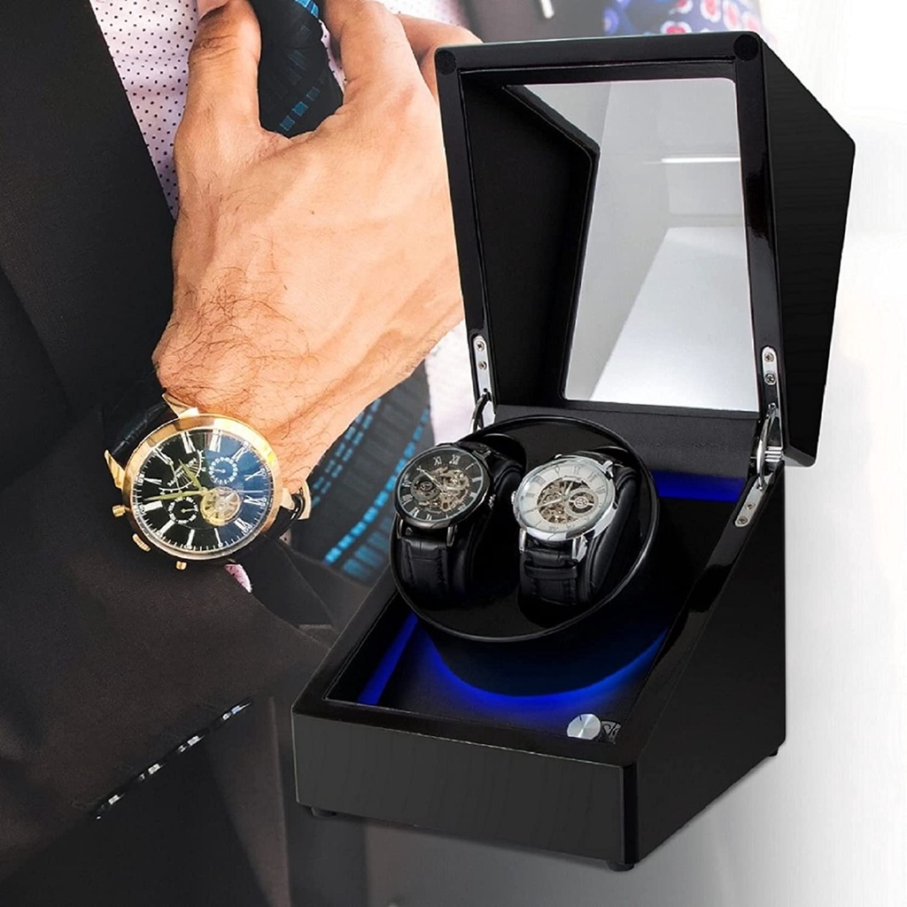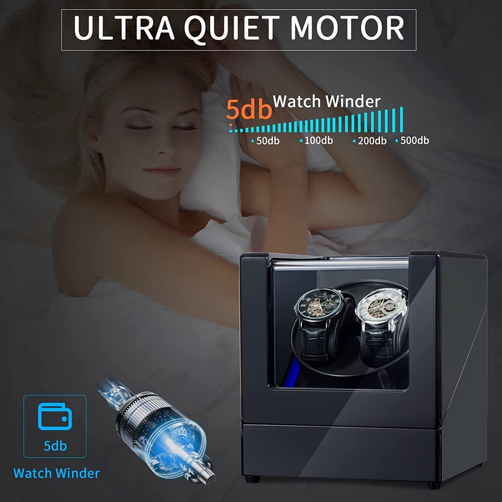 Double Automatic Watch Winders,2 Automatic Watch Winder with Built-in LED Light, Double Watch Winder with Ultra-Quiet