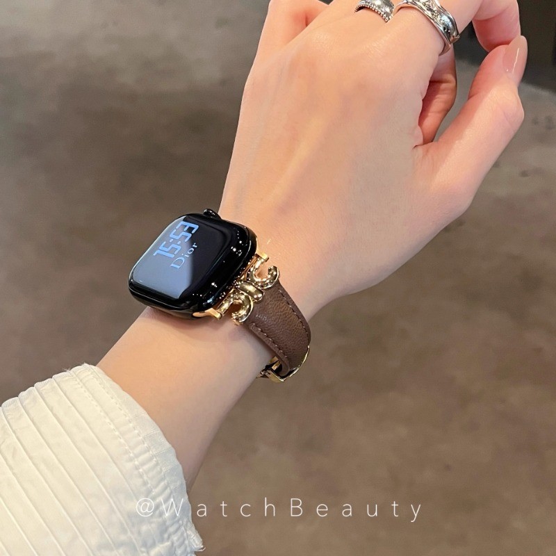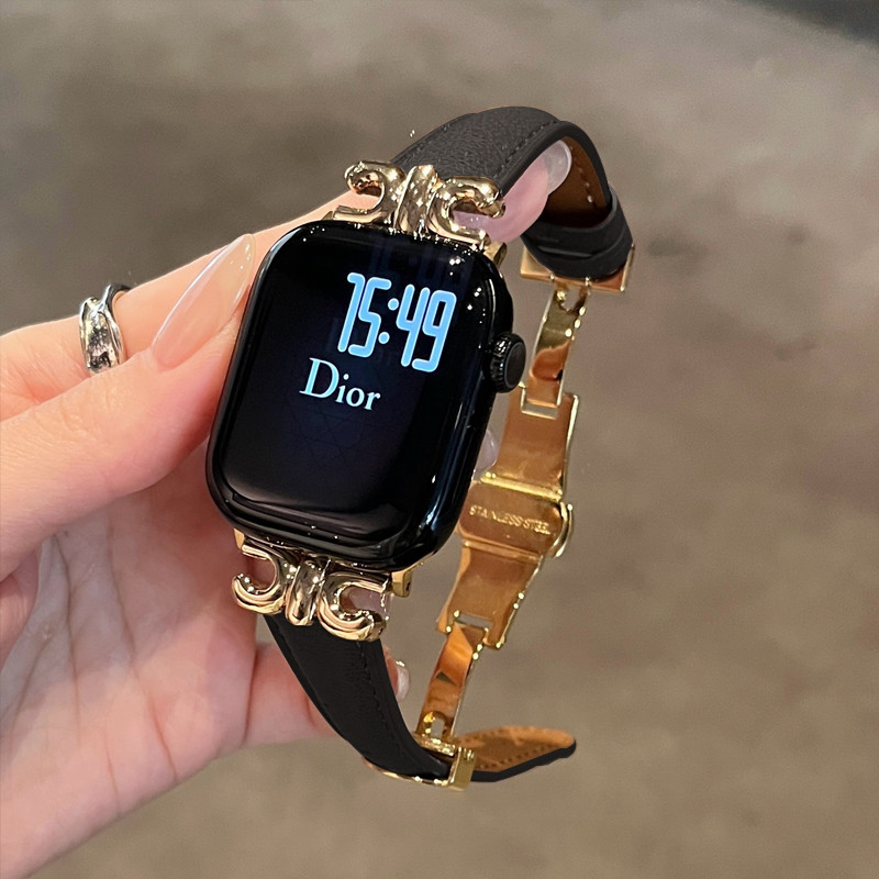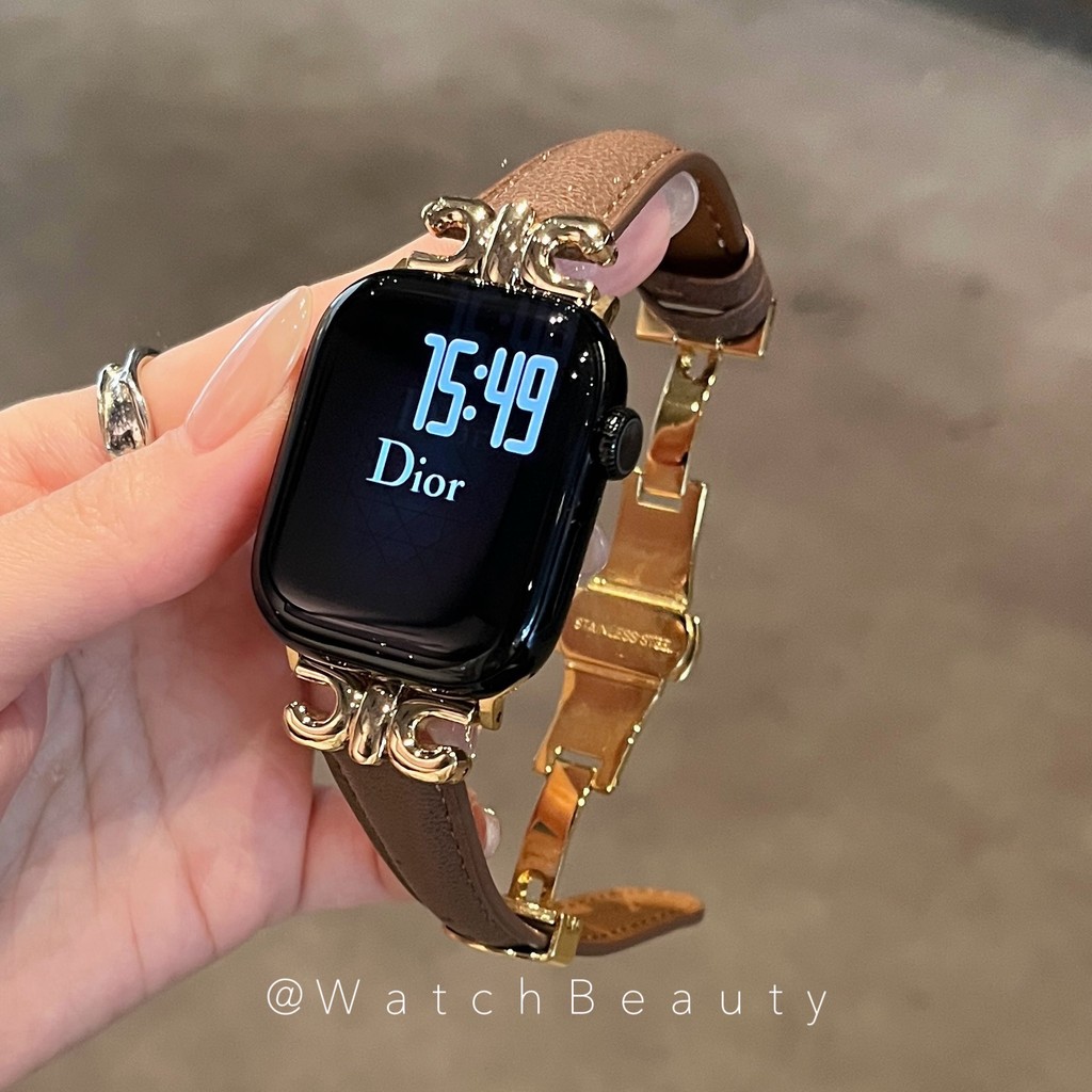 Double C-Shape Crown Leather Strap for Aple Watch S10 46mm 42mm Ultra 2 49mm Series 10 9 8 7 45 41mm Metal Butterfly Buckle band for iwatch 6 SE 5 4 3 44 40mm 38 S9 Smart Women
