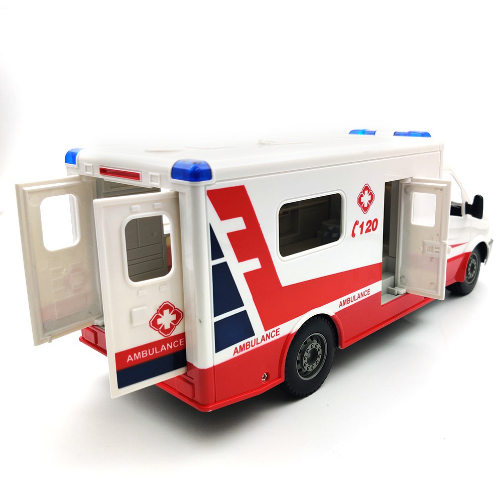 Double E 1:20 RC Ambulance, Emergency Rescue Remote Control Ambulance Toy with Light and Sound for Boys Toy