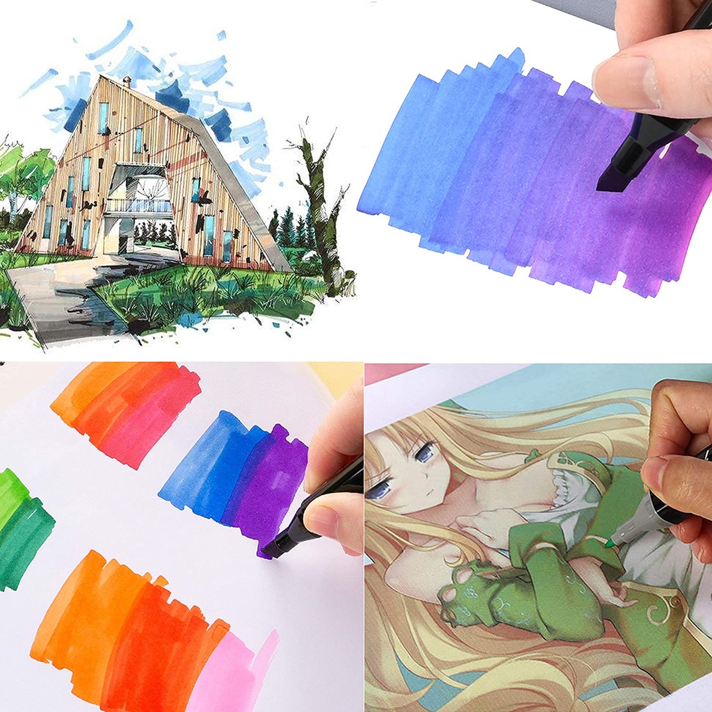 Double Head Marker Pen 12/24/30/60/80 Dual Tip Permanent Marker Pens Colorful Drawing Pens Painting Student Stationery
