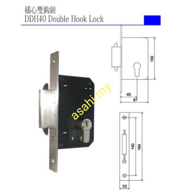 Double Hook Lock 40mm c/w Double Key Cylinder