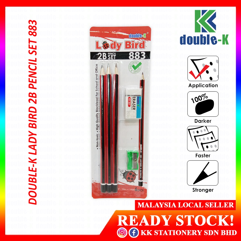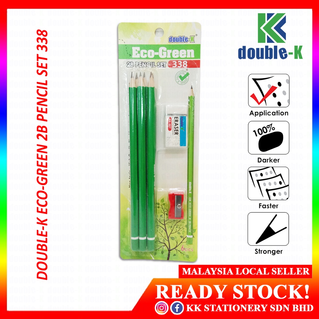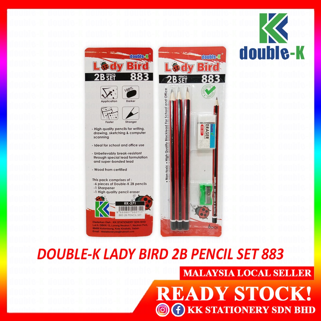 Double-K 2B Pencil Set KK-270 Eco-Green, KK-271 Lady Bird, KK-272 Rainbow - RM15.00/pck (6crd per pck)