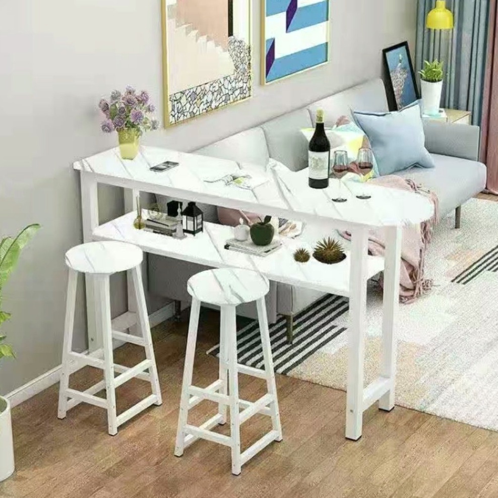 Double-Layer Bar Table Room Bar Counter Household Table Wall Coffee Dining Table and 2 Chair