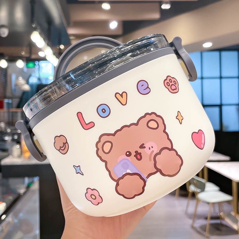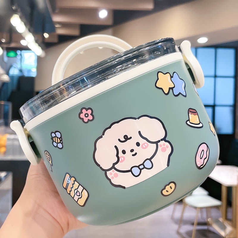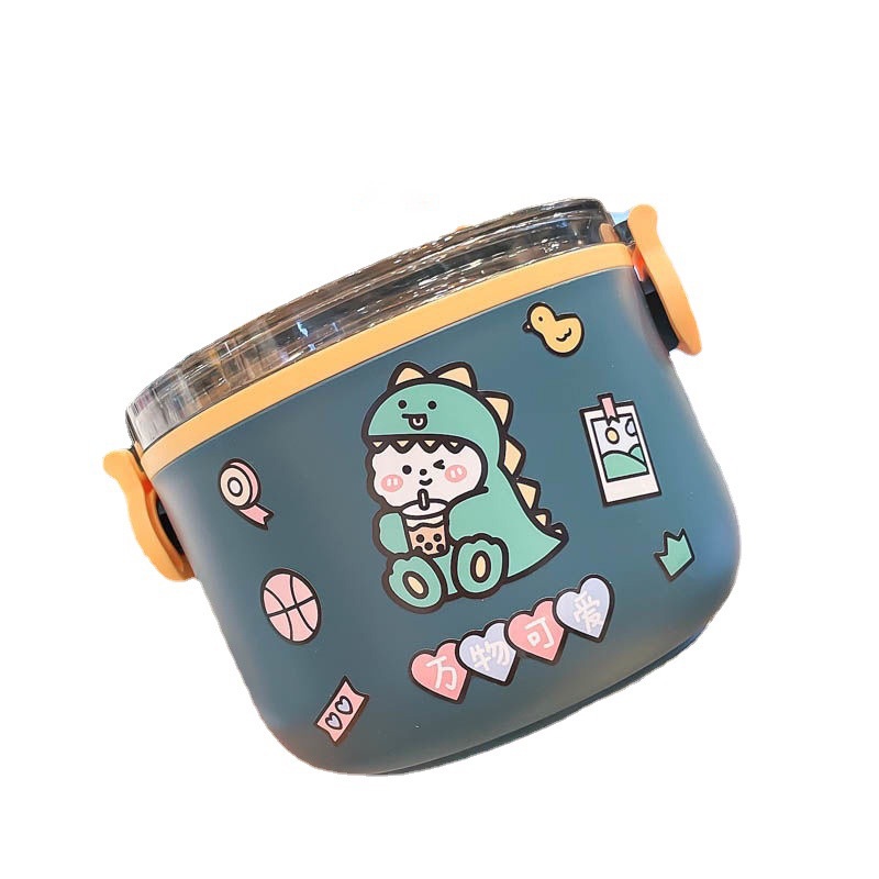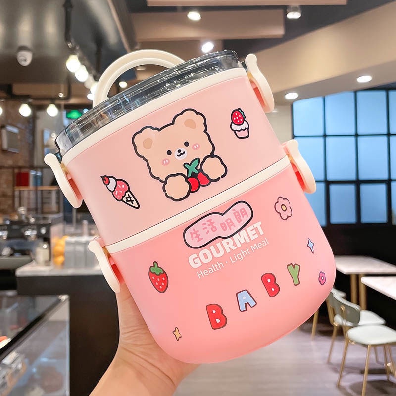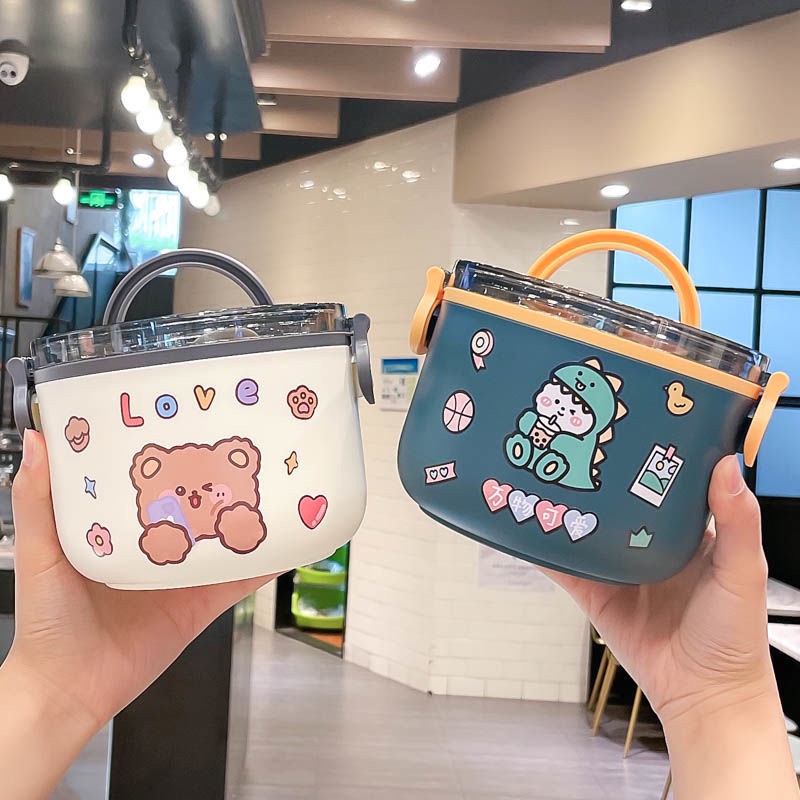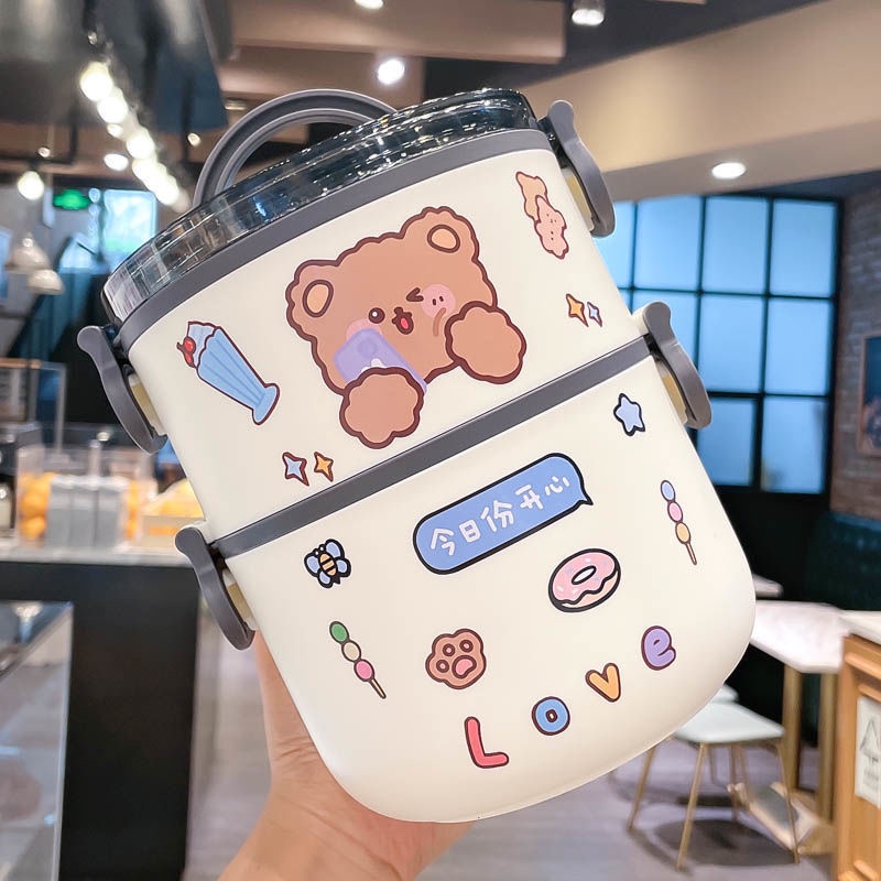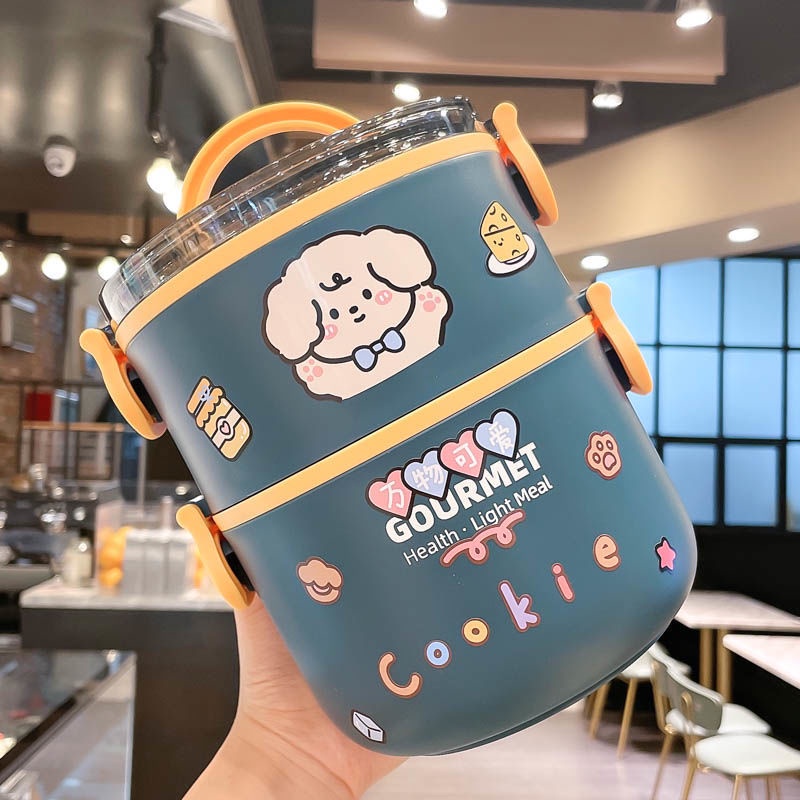 Double Layer Bento Lunch Box 1L/2L Portable Stainless Steel Round Meal Lunch Box Sealed Leakproof Bento Box for Office Worker School and Picnic
