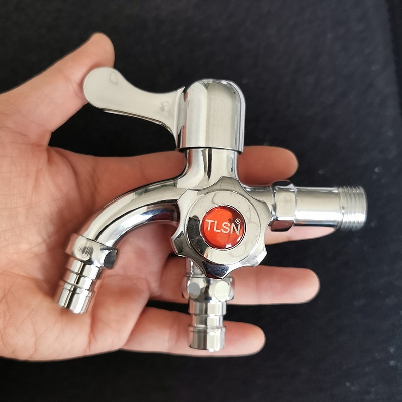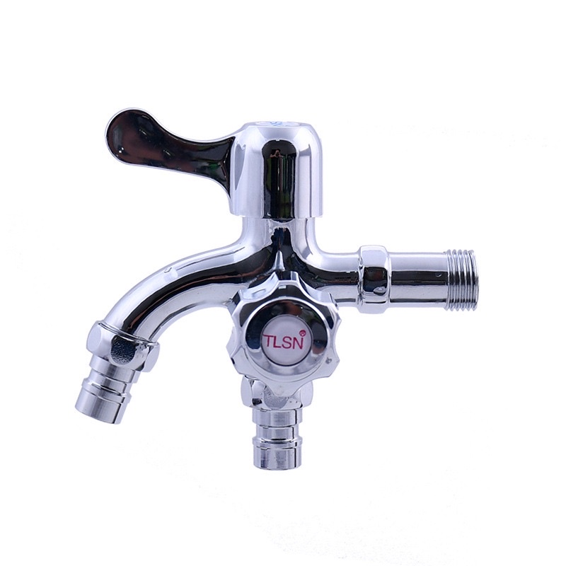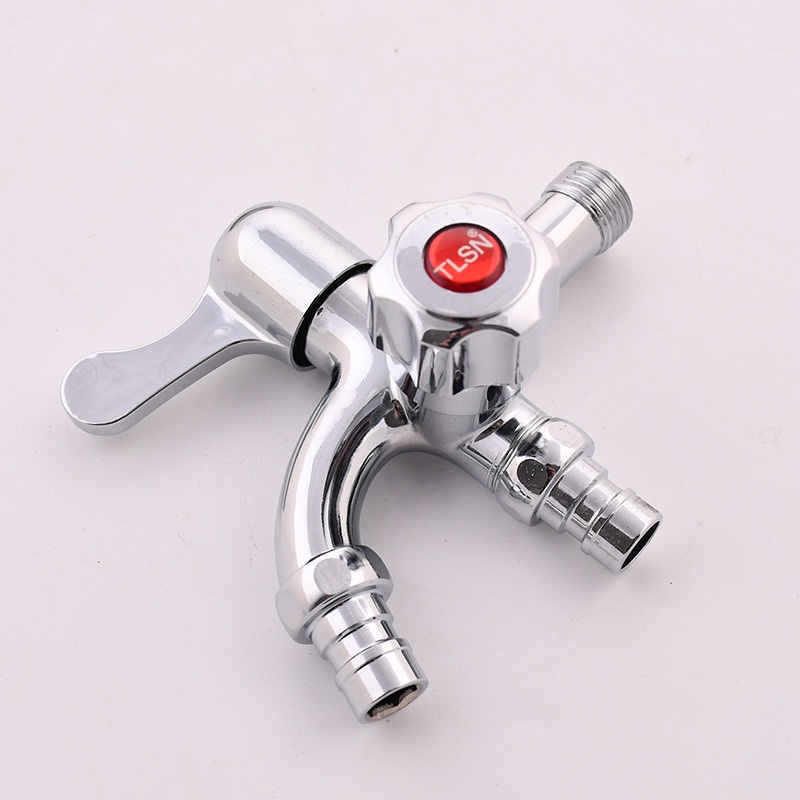 Double Outlet Tap 1 in 2 Out Washing Machine Bathroom Garden Water Faucet