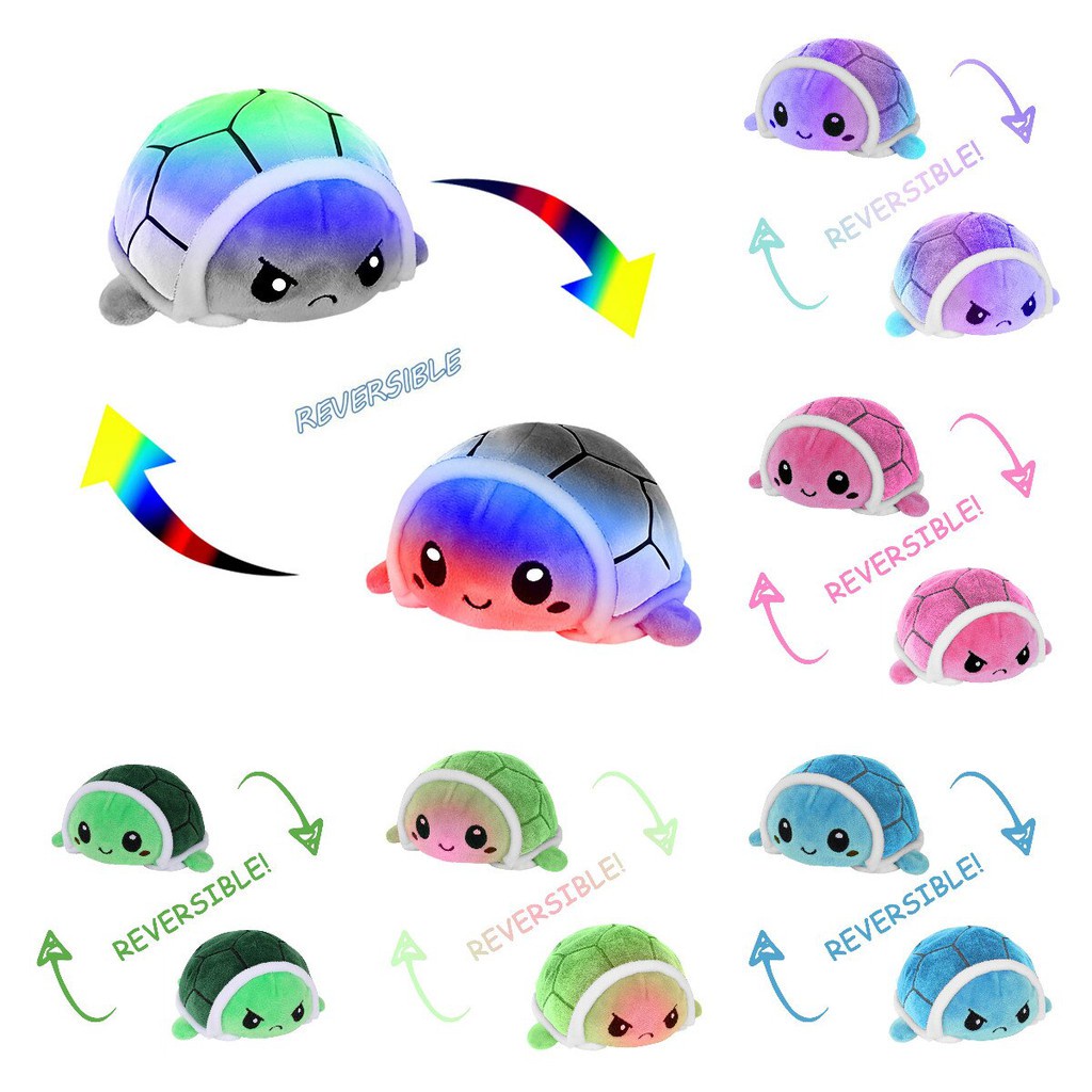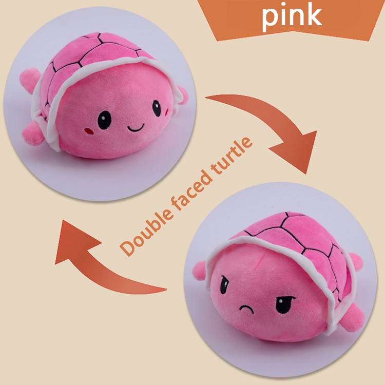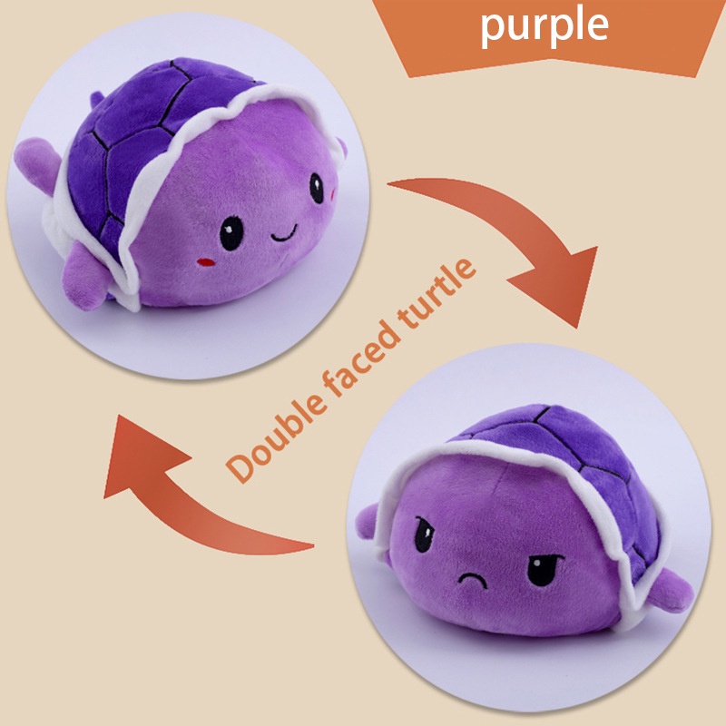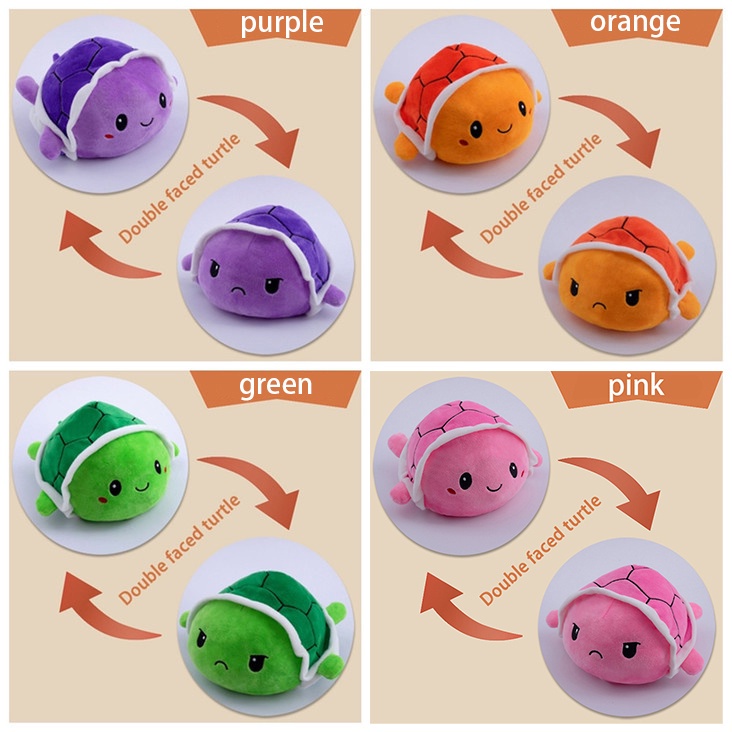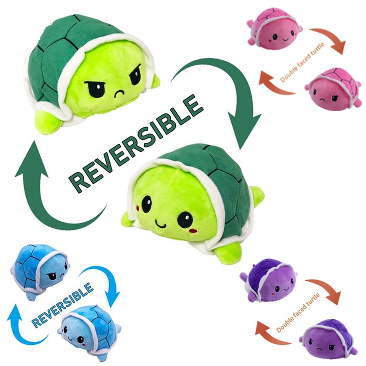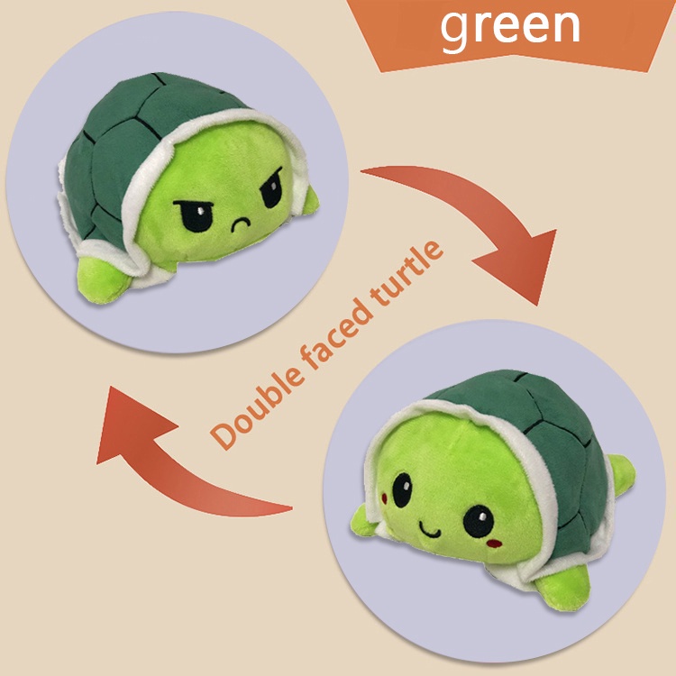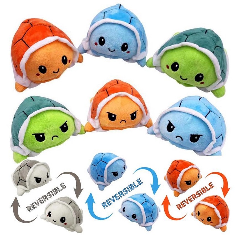 Double Sided Flip Turtle Super Fluffy Cute Mini Stuffed Turtle Mood Expression Toy