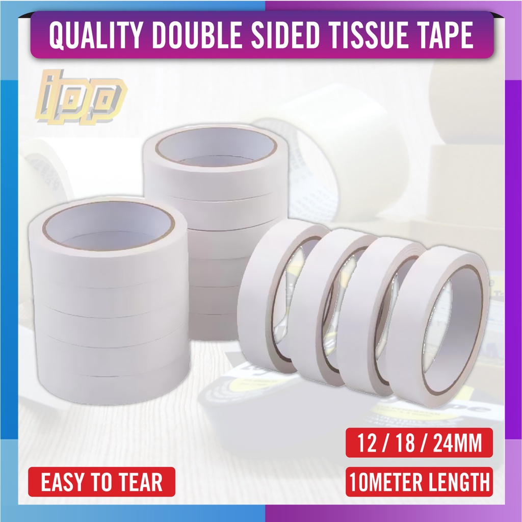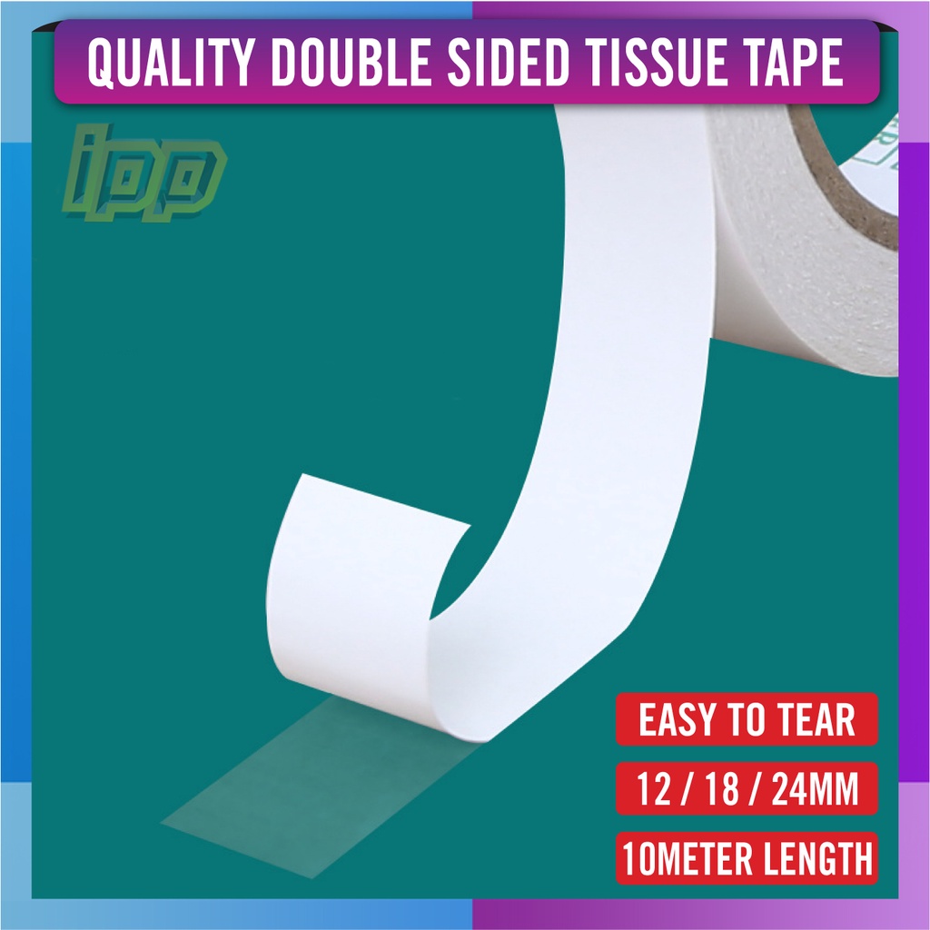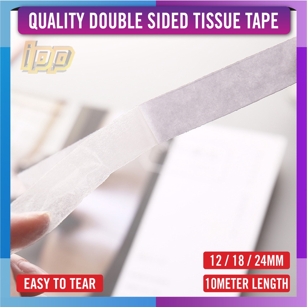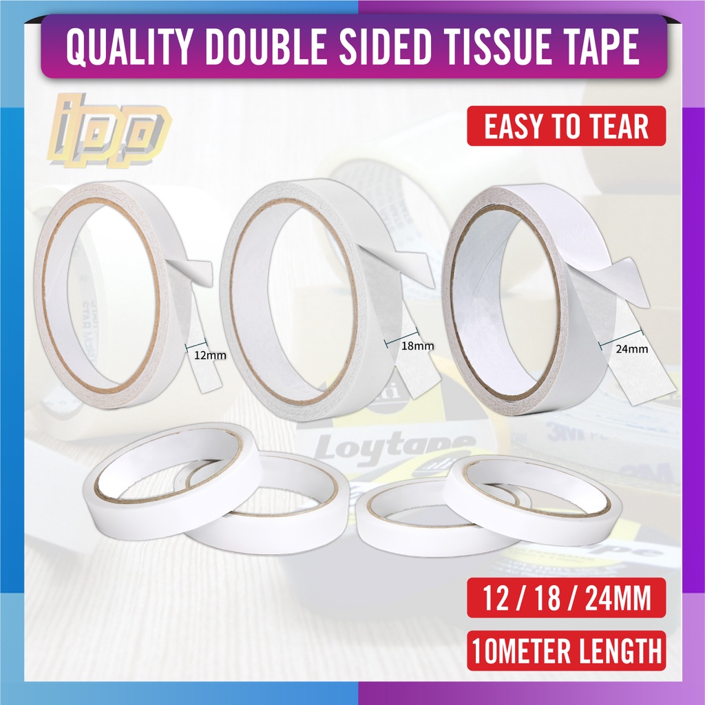 Double Sided Tissue Tape - 10 Meter / 12mm / 18mm / 24mm - Double Side Tape