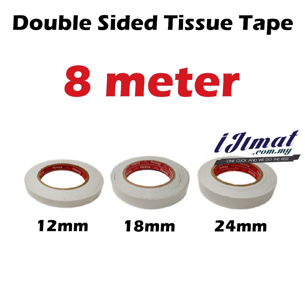 Double Sided Tissue Tape Self Adhesive (12MM / 18MM / 24MM) 8m 8meter