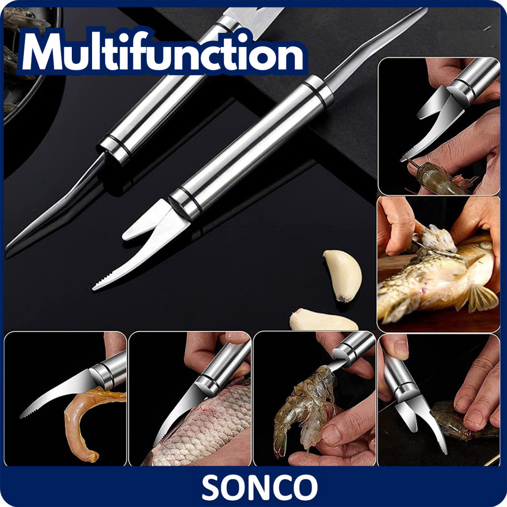 Double-ended shrimp flosser stainless steel shrimp peeler fish belly knife pick intestine multi-purpose kitchen tools