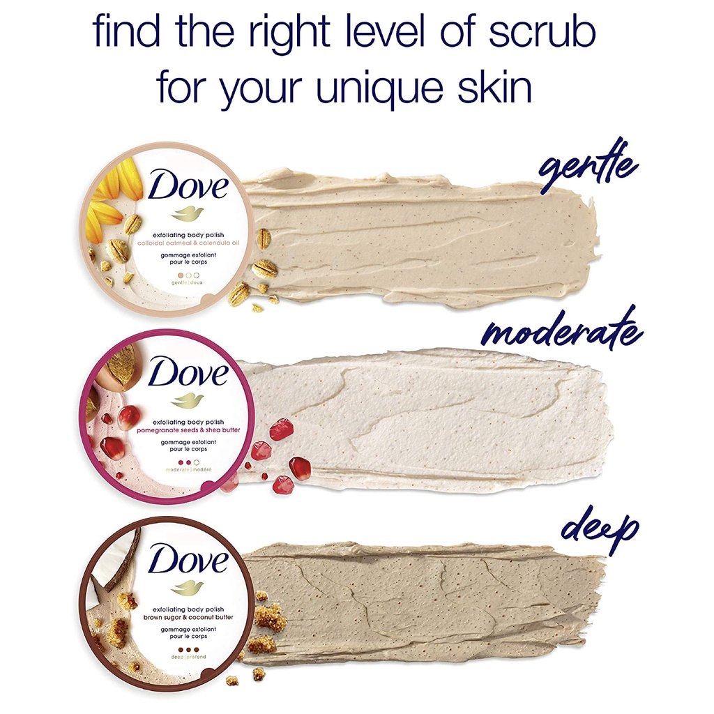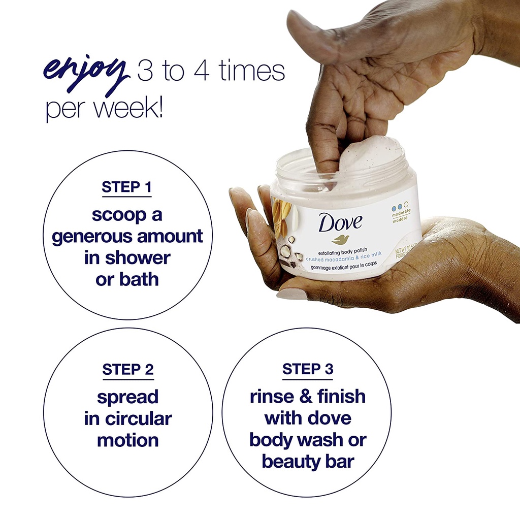Dove Exfoliating Body Polish Body Scrub | Dove Whipped Body Cream Macadamia and Rice Milk Pomegranate and Shea Butter